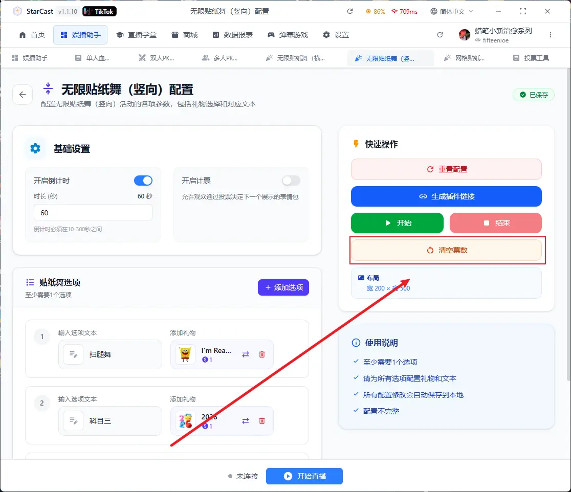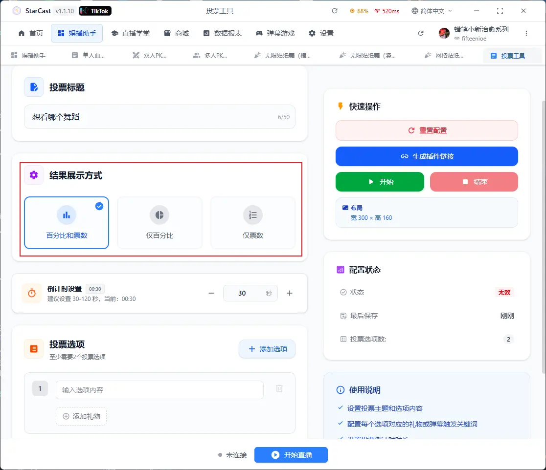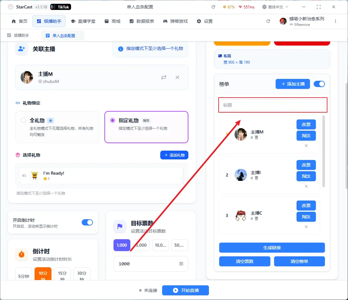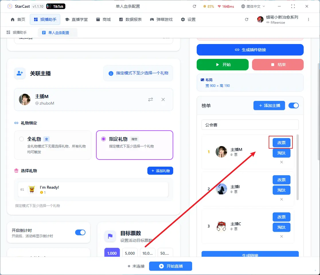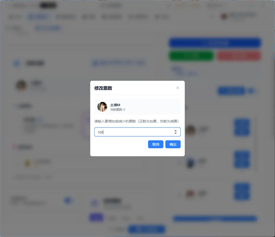 添加之後如圖所示,點擊改票,輸入票數,即可修改主播的票數