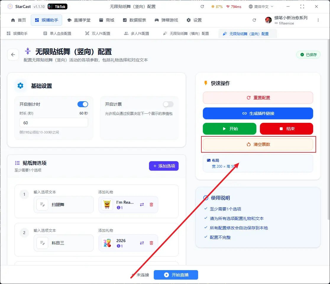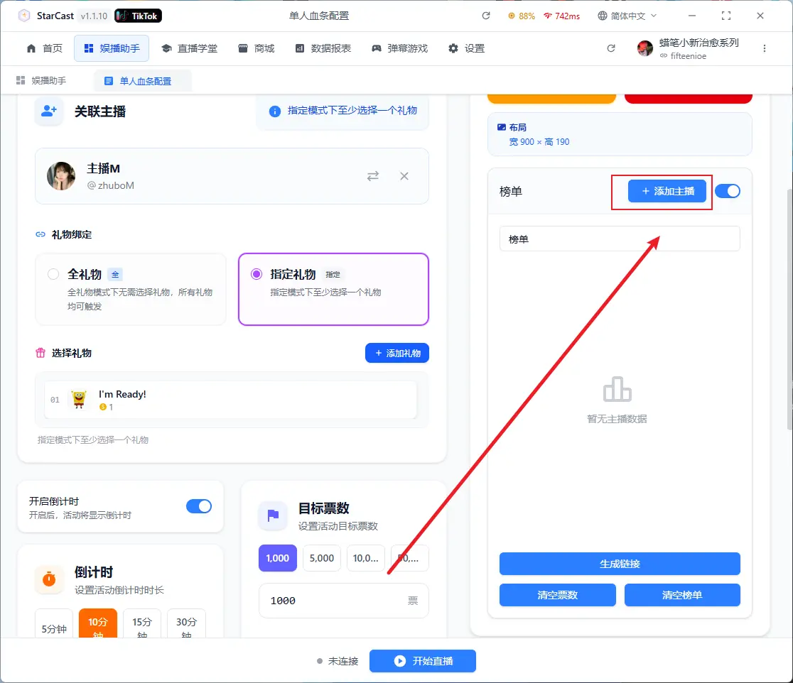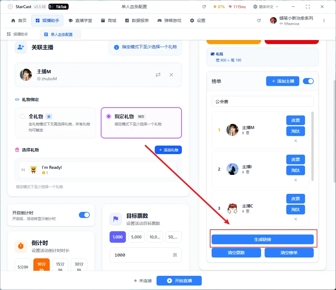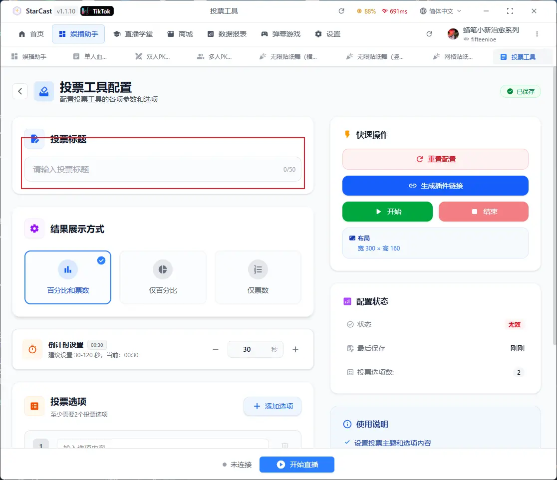 添加之後如圖所示,點擊改票,輸入票數,即可修改主播的票數