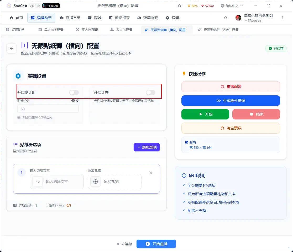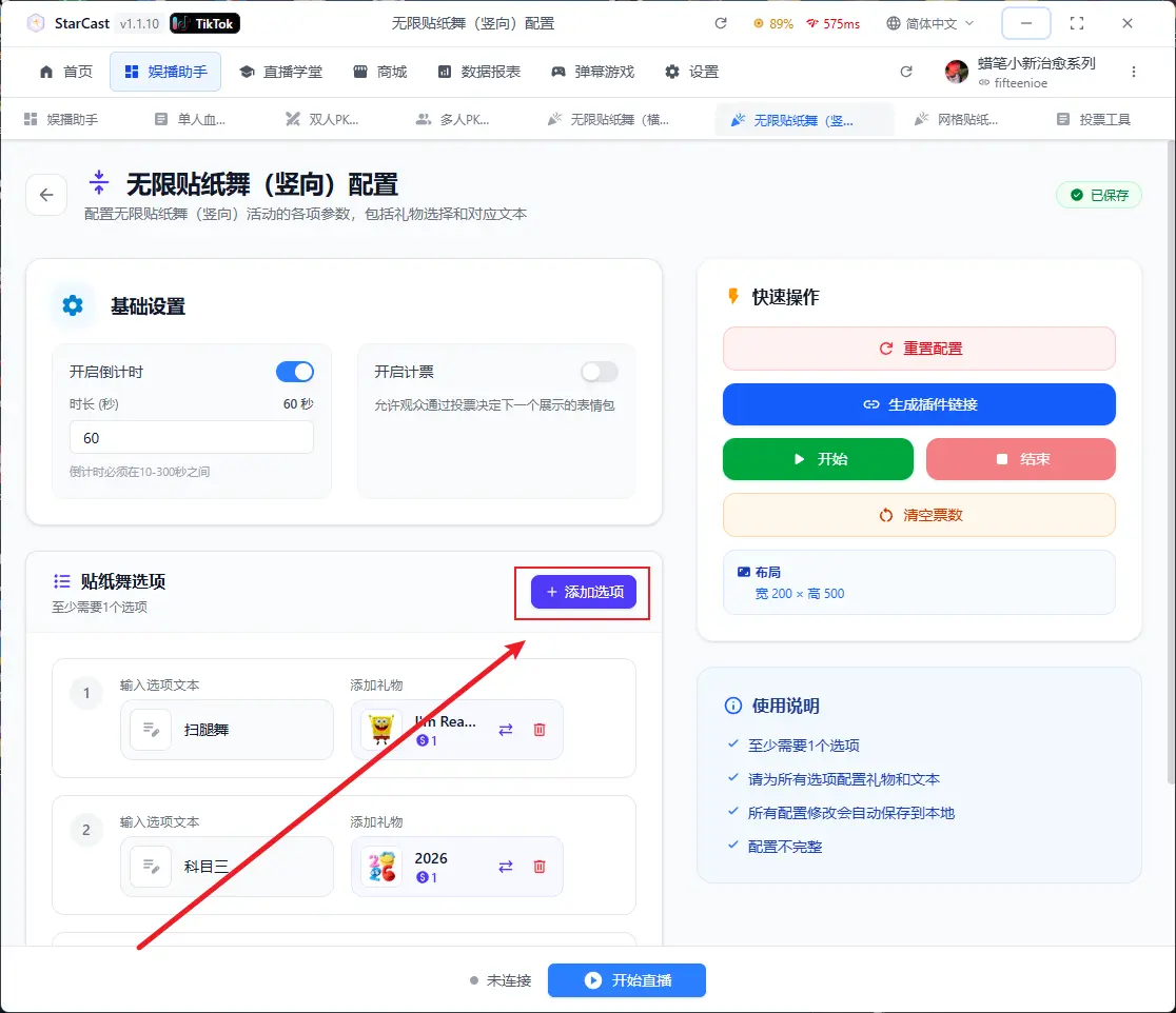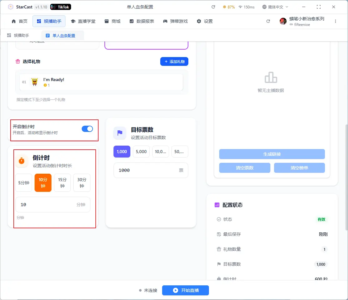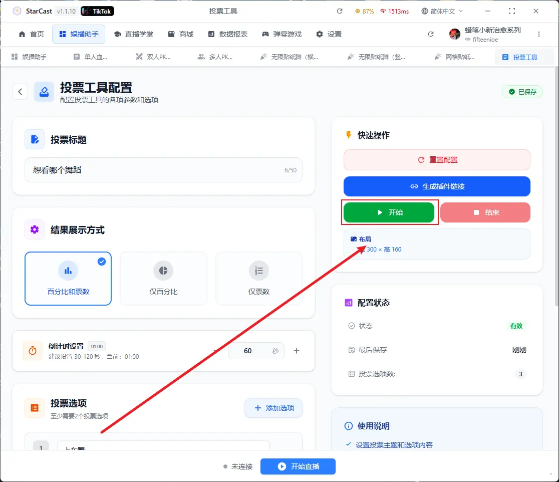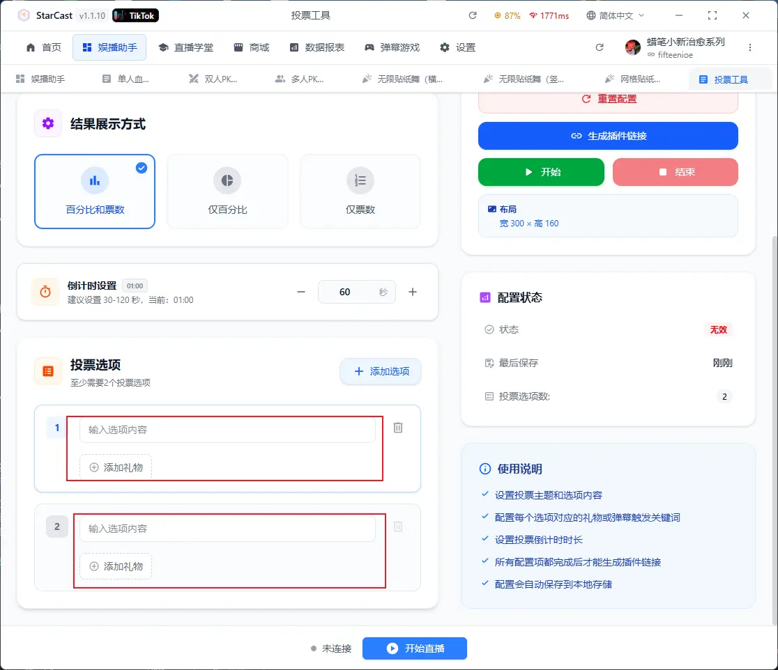 添加之後如圖所示,點擊改票,輸入票數,即可修改主播的票數