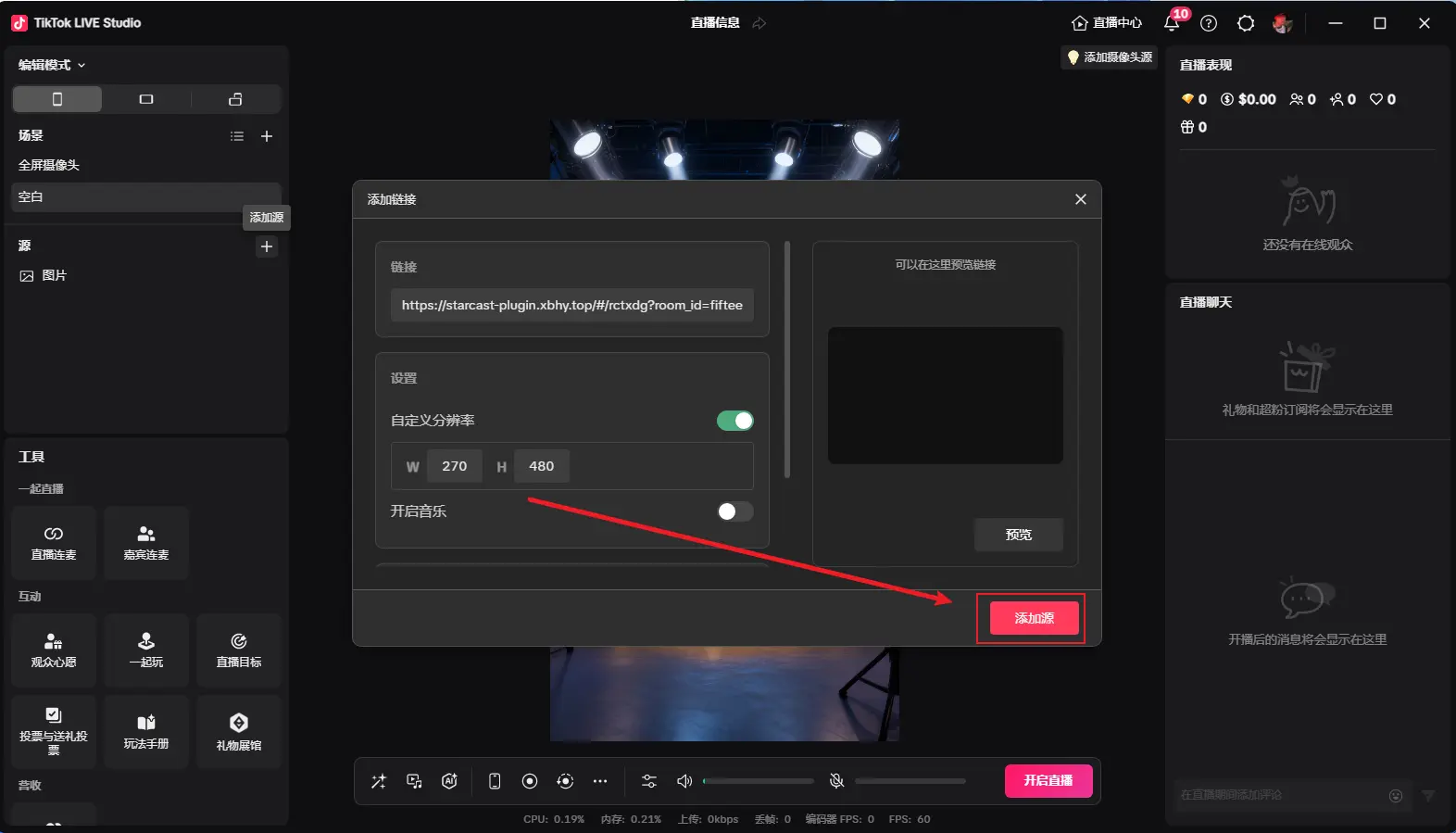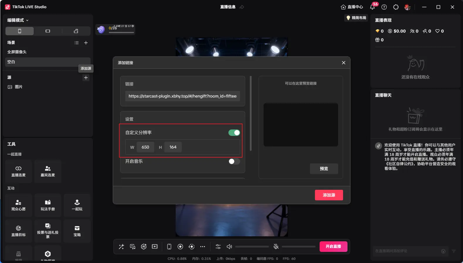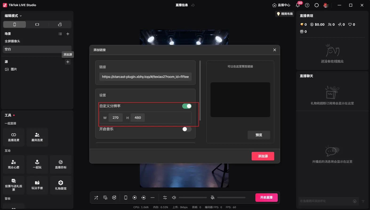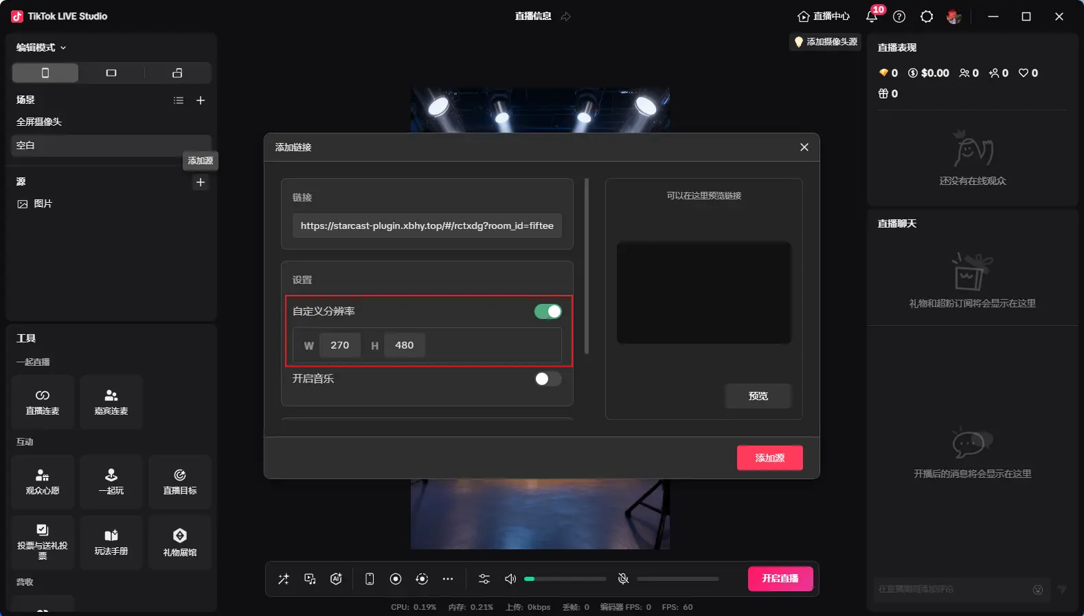 把剛才生成的連結複製上去,自定義解析度改成270x480