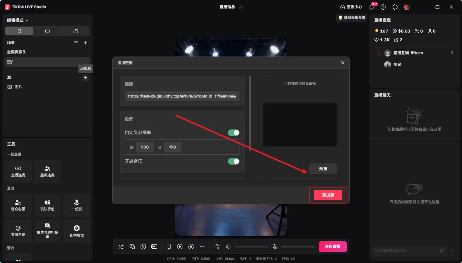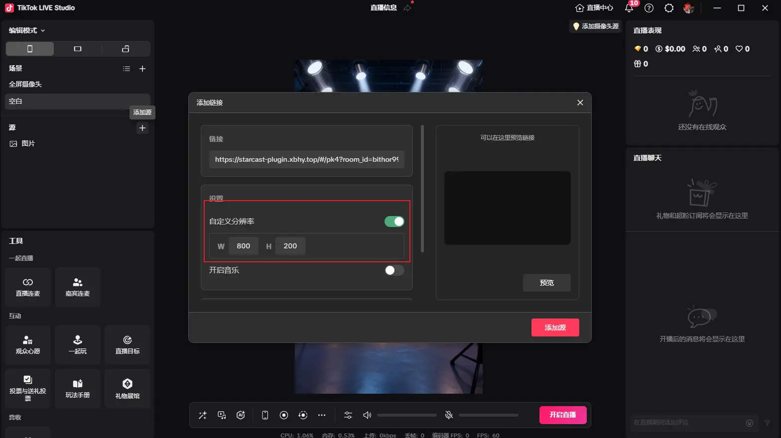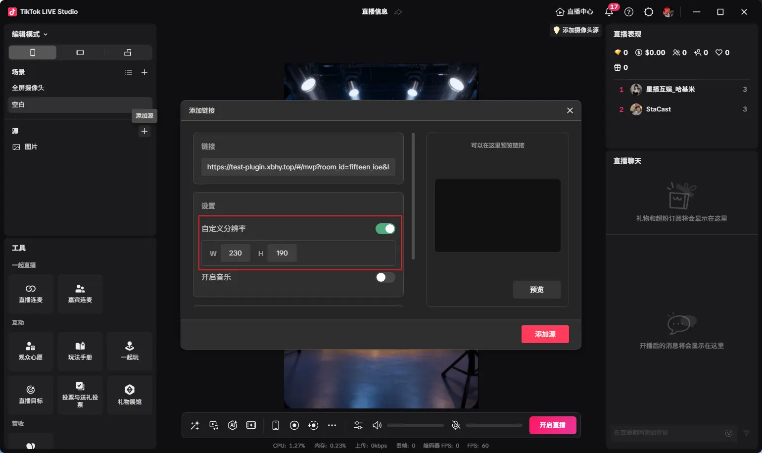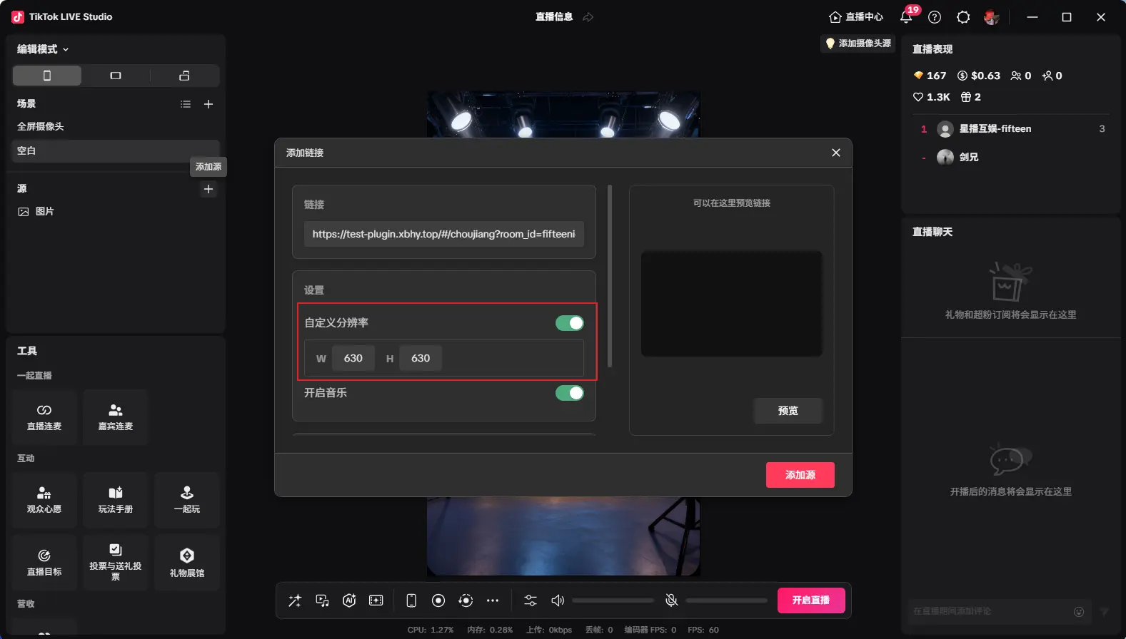 把剛才生成的連結複製上去,自定義解析度改成270x480