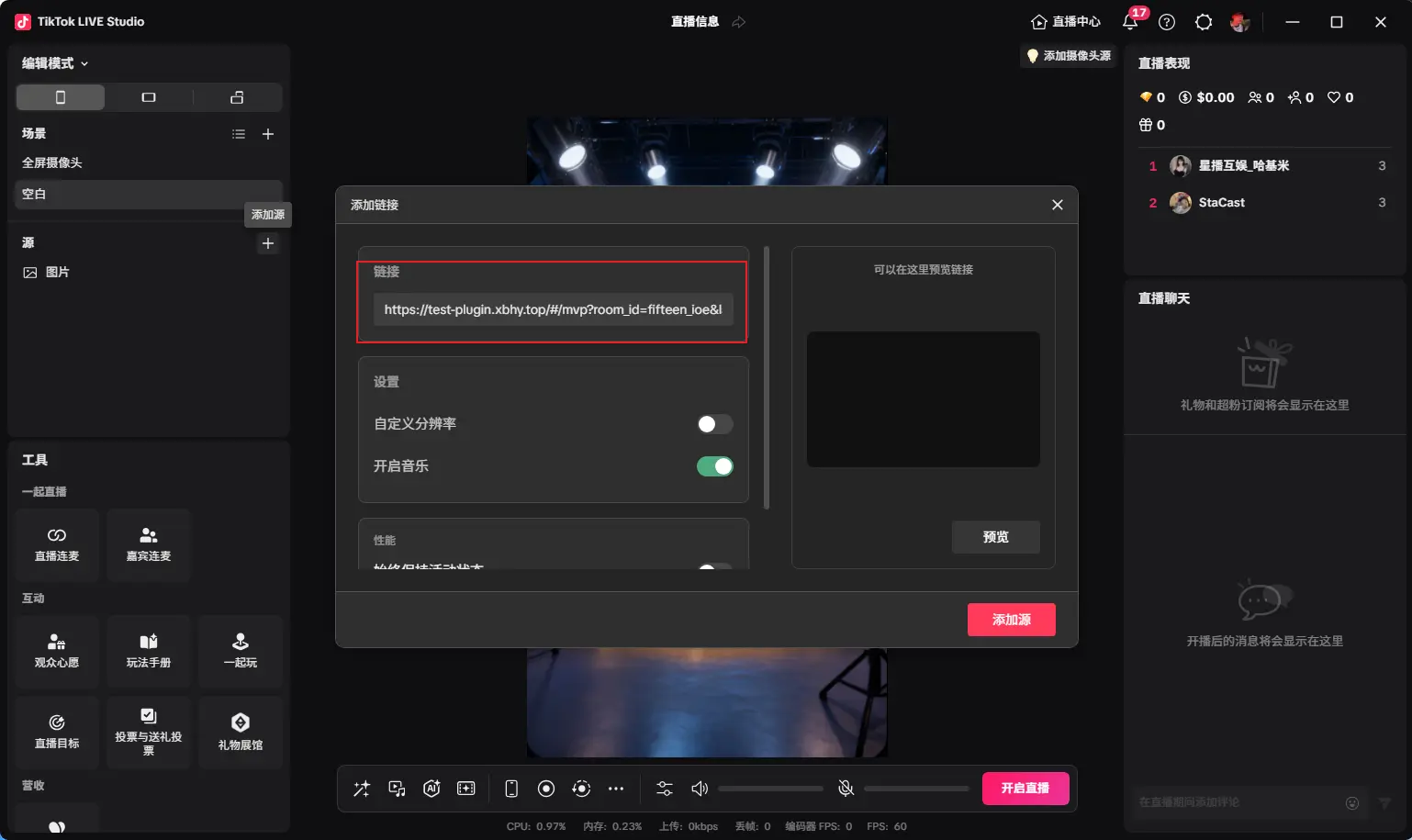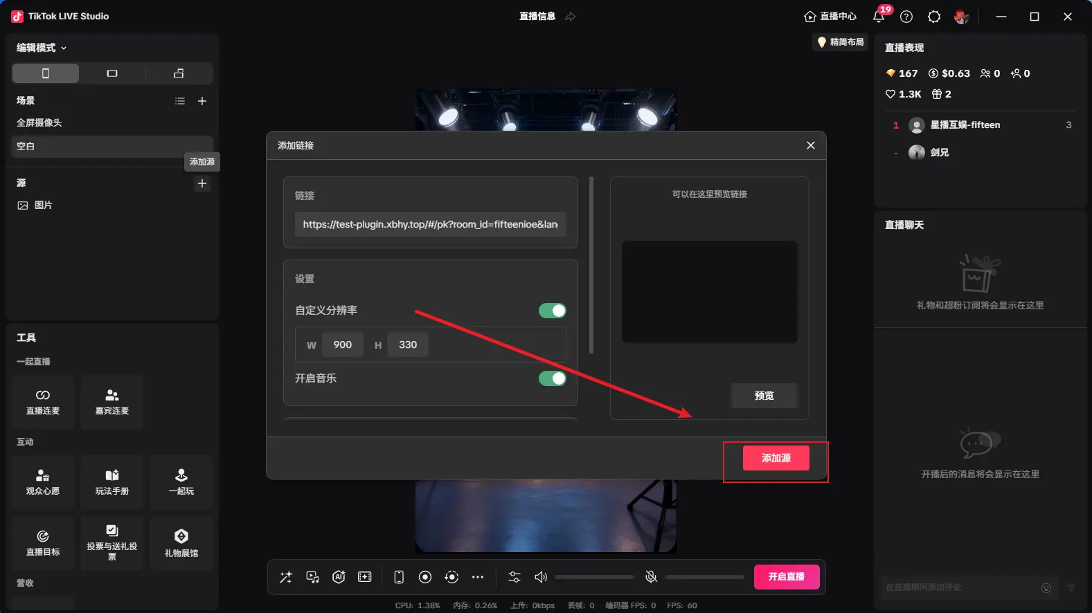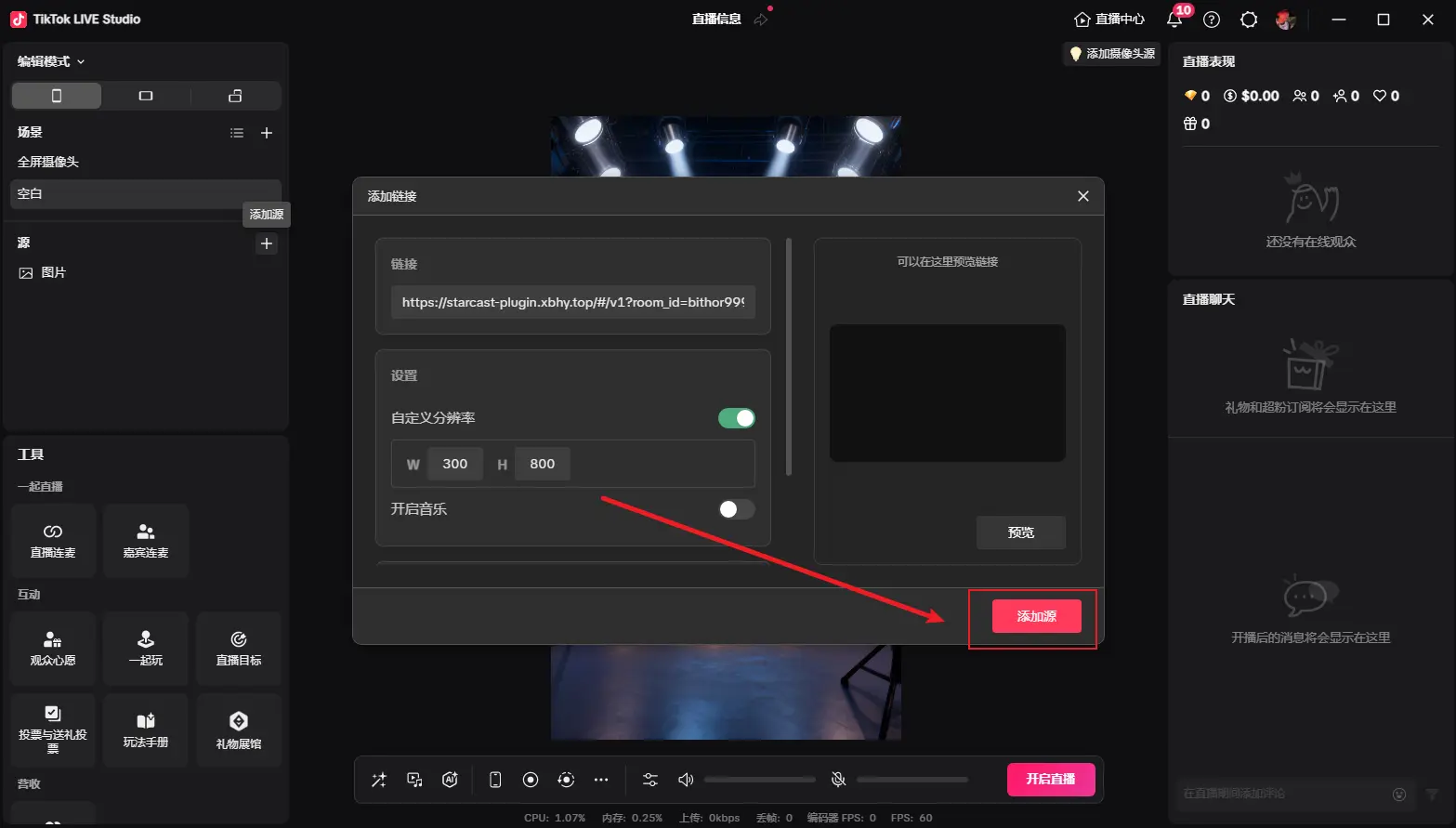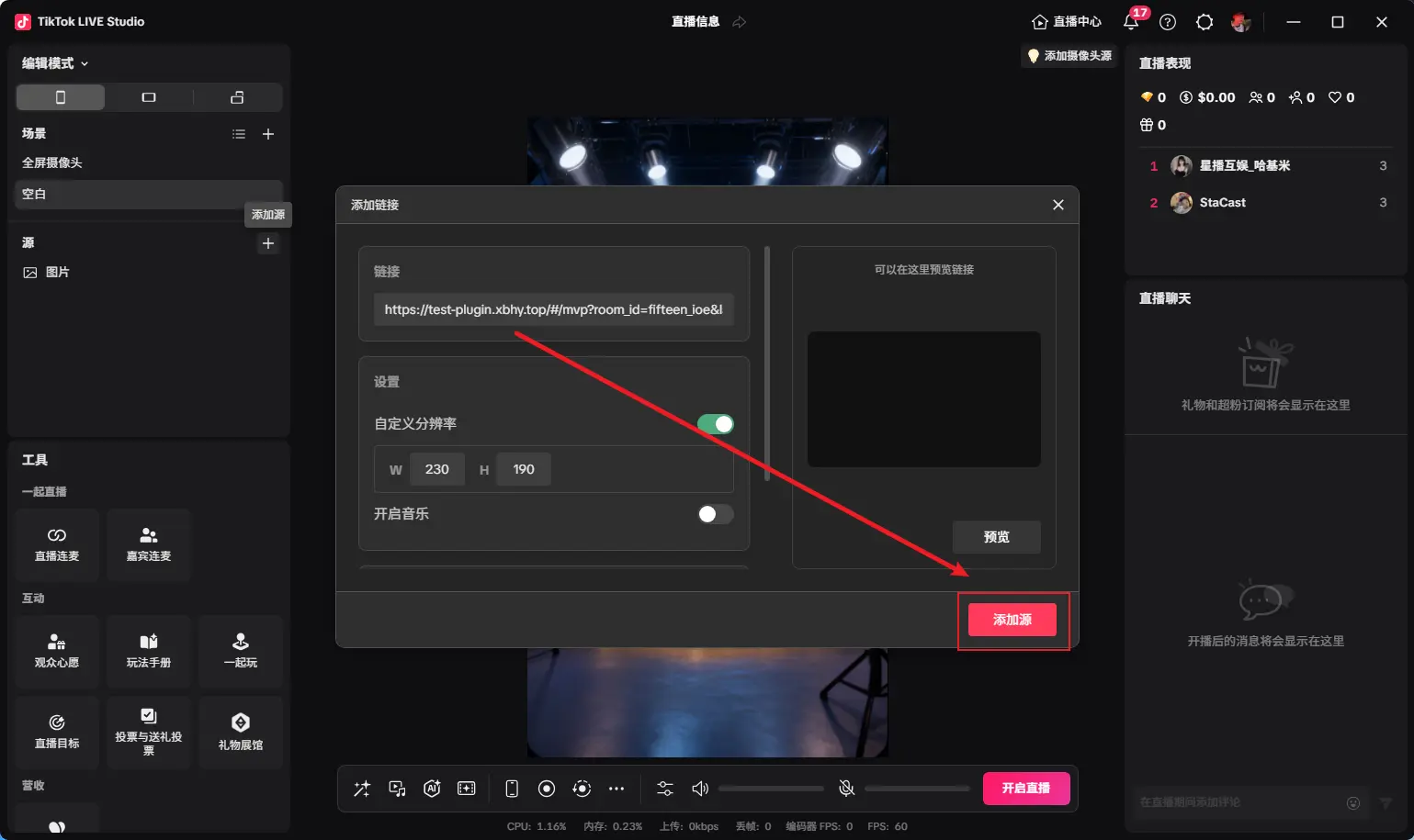 把剛才生成的連結複製上去,自定義解析度改成270x480