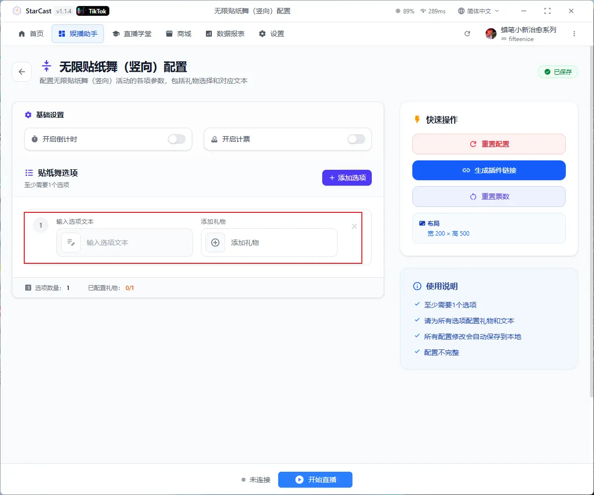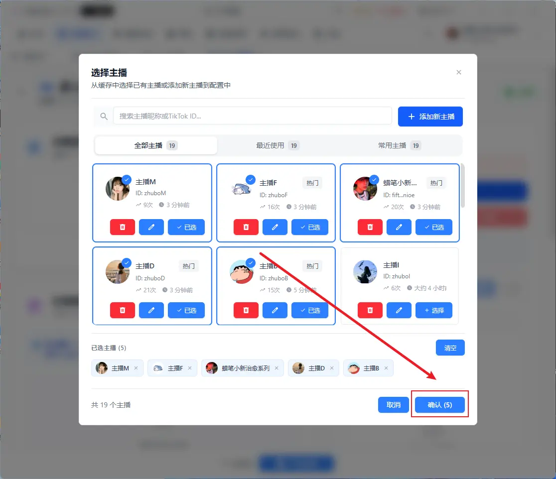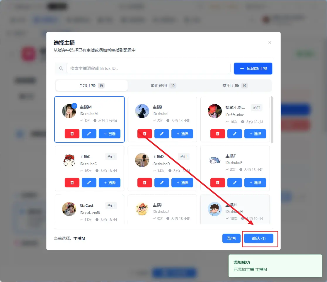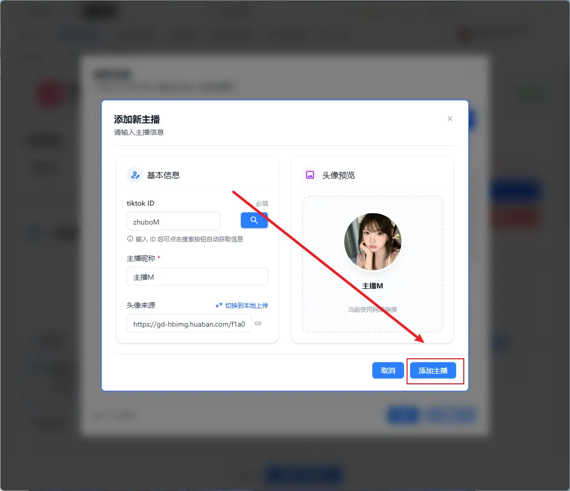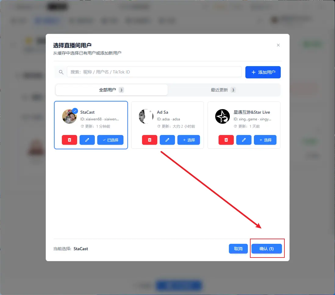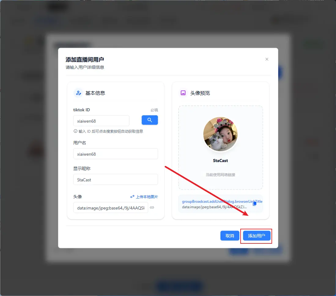 輸入TikTokID點擊自動獲取,保存之後自動選擇剛剛添加的用戶