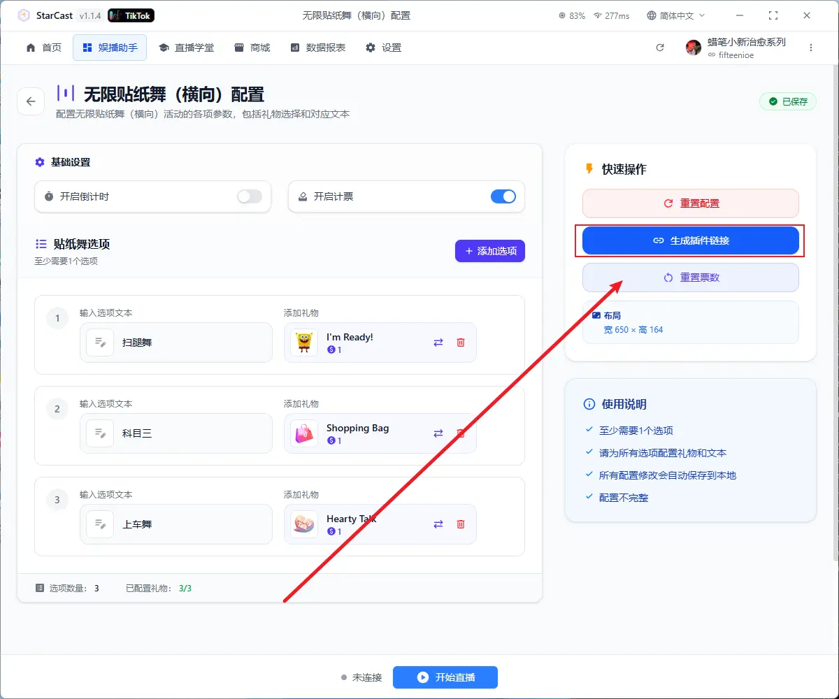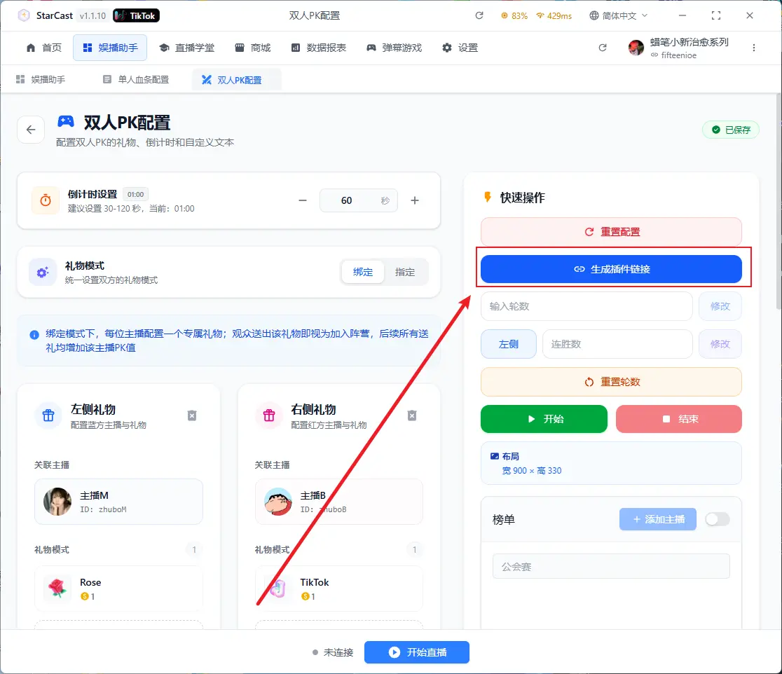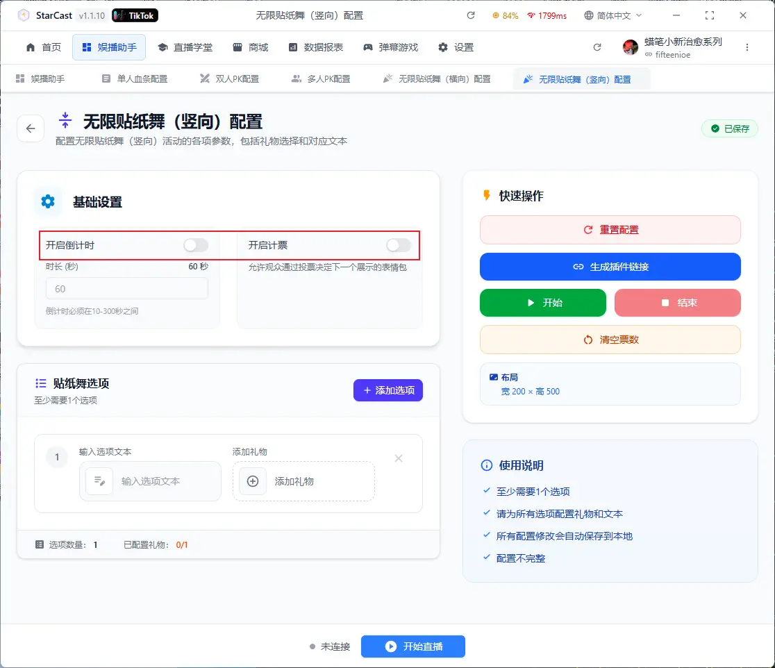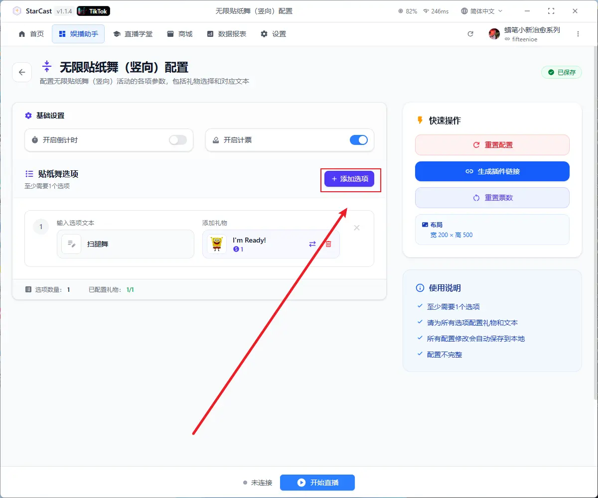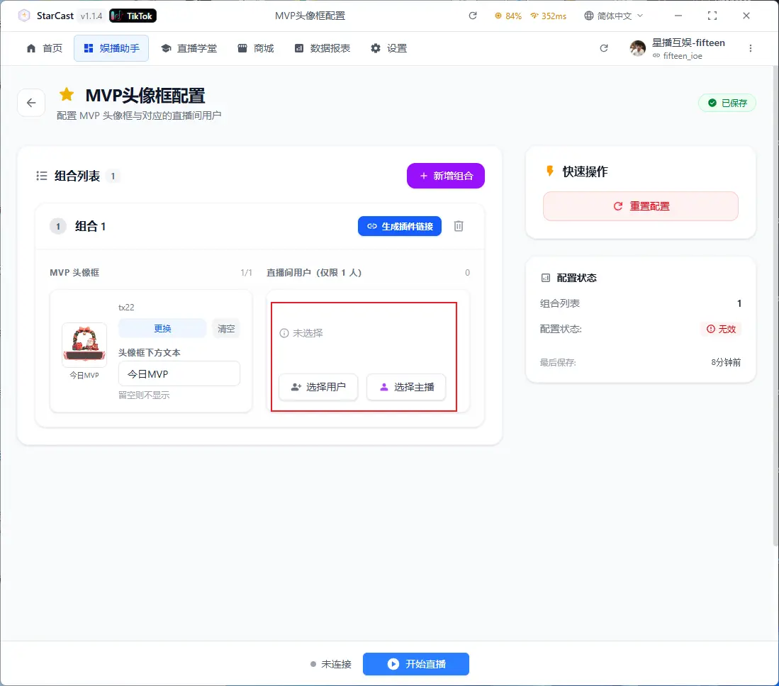 輸入TikTokID點擊自動獲取,保存之後自動選擇剛剛添加的用戶