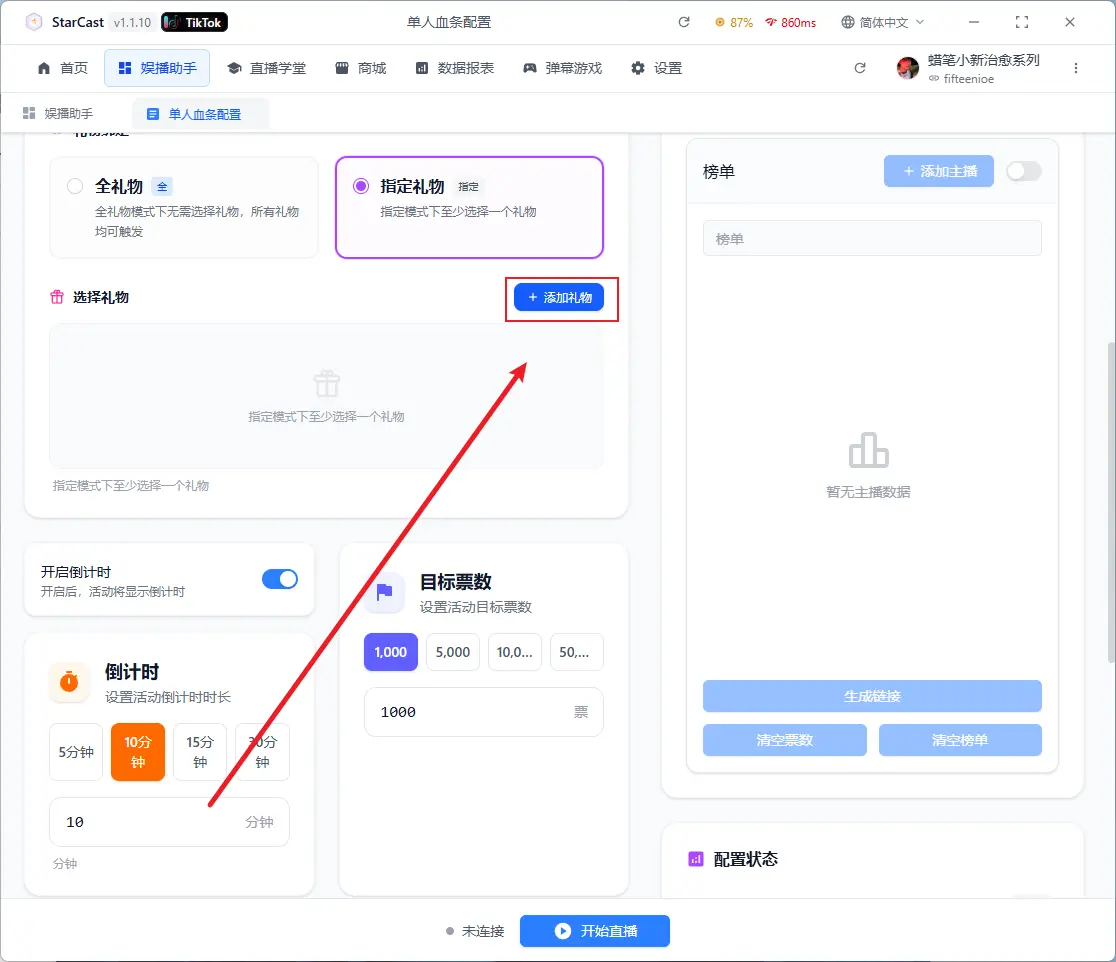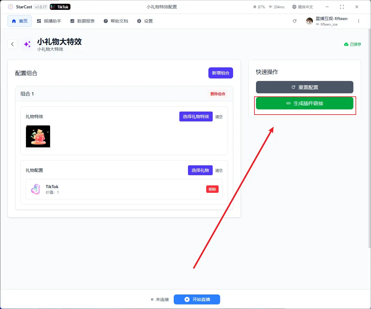 在這裡點擊進去選擇想要的禮物特效以及觸發的小禮物