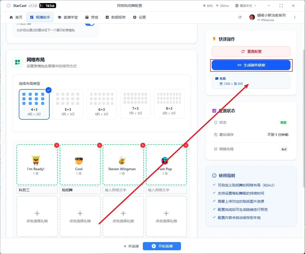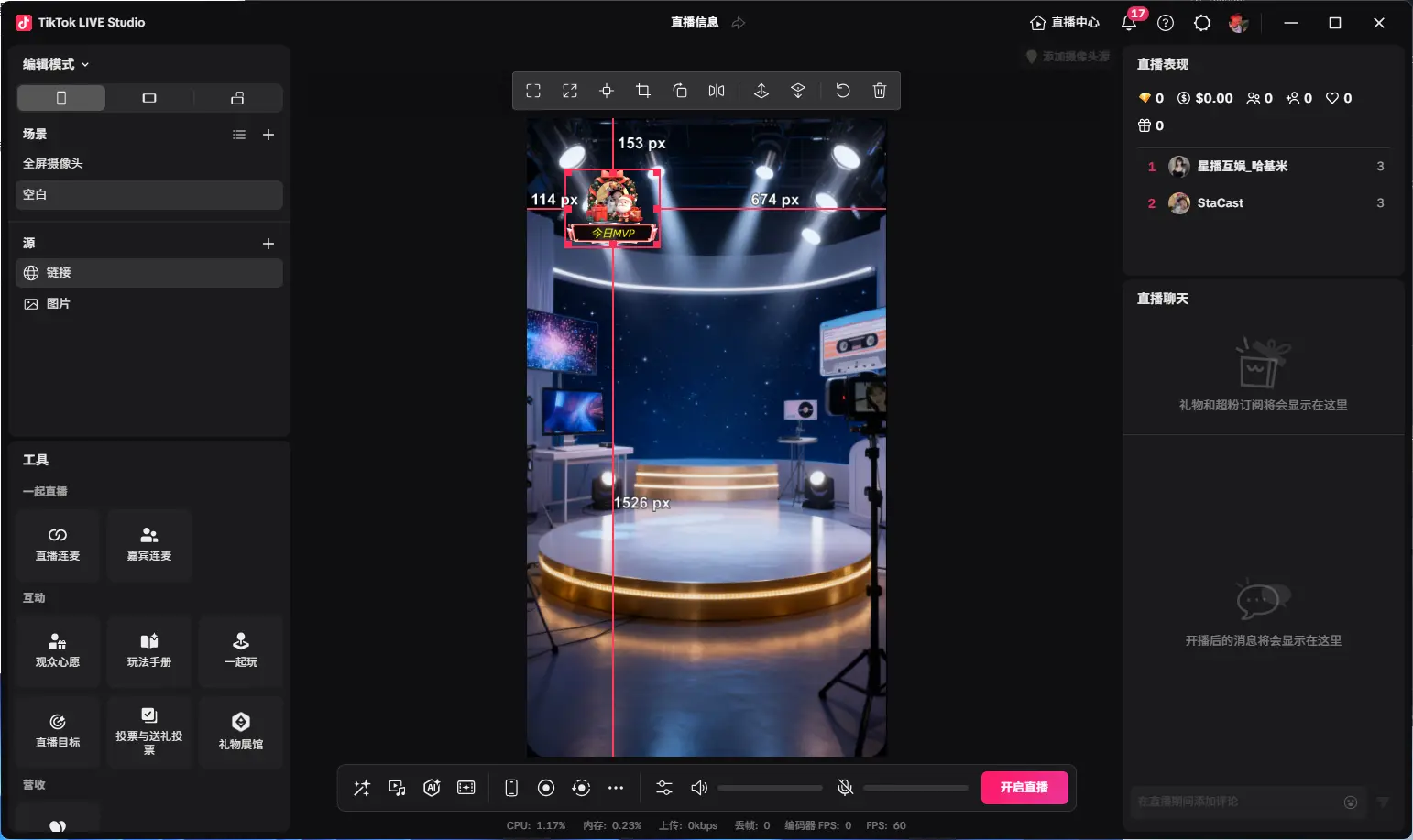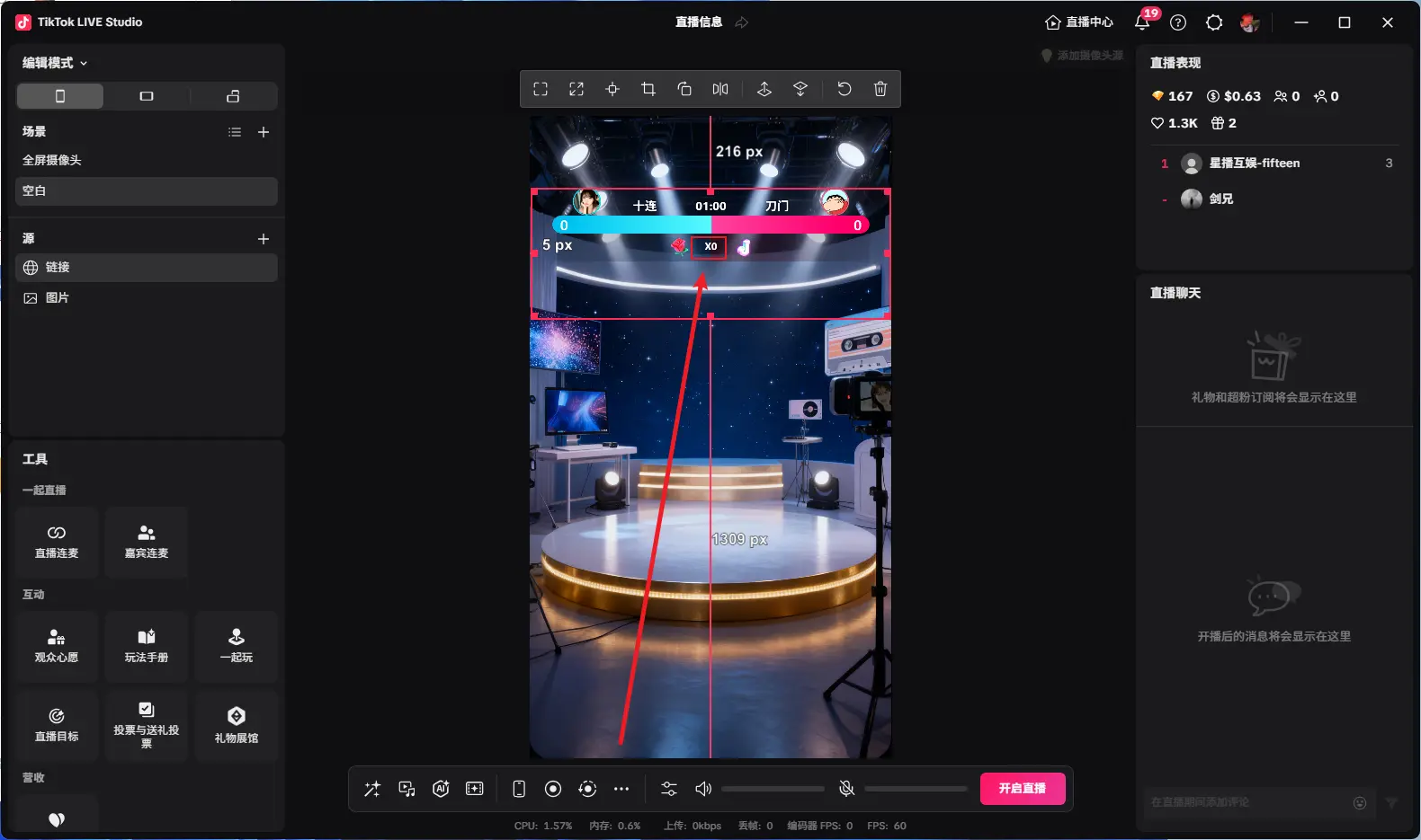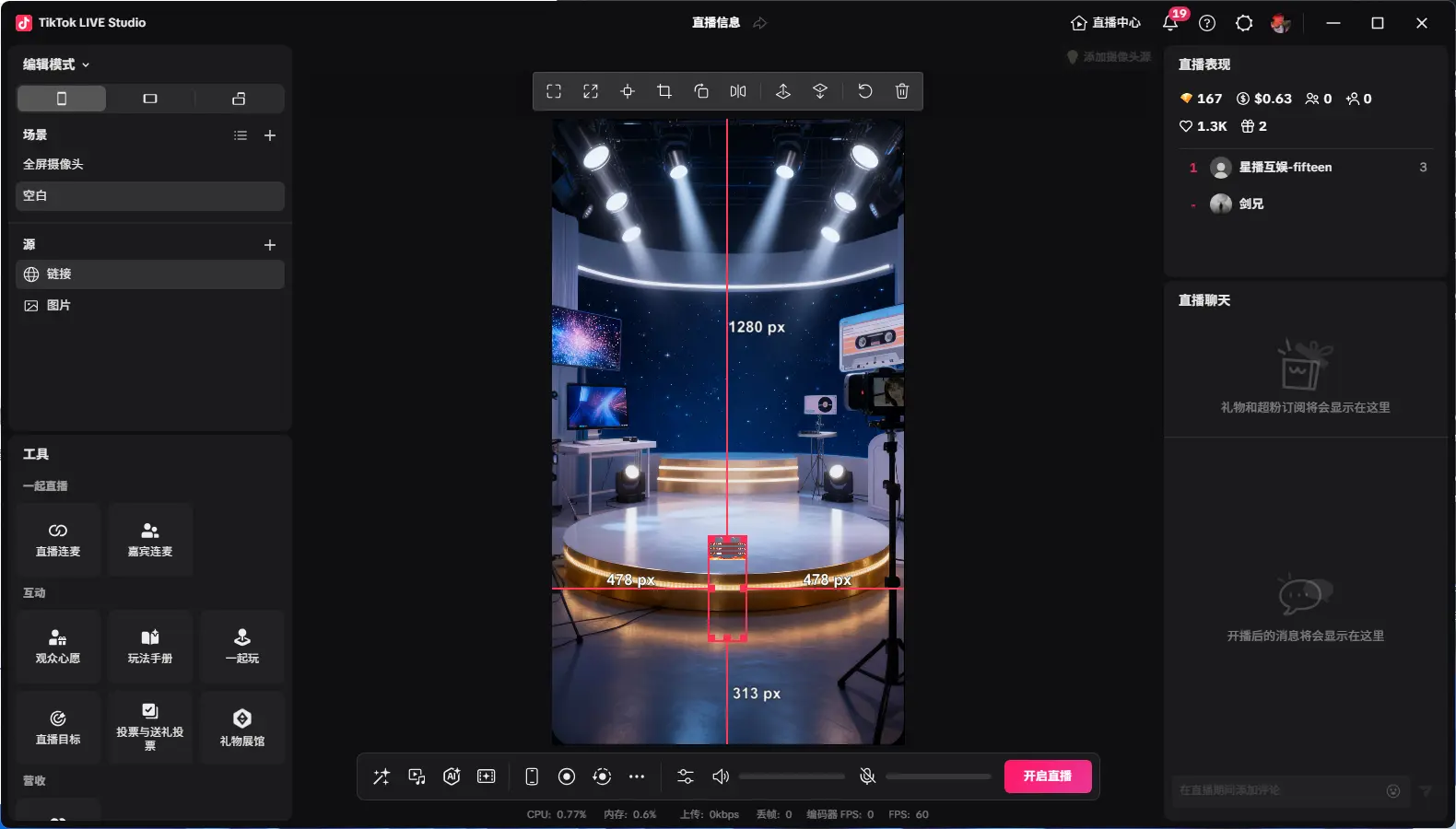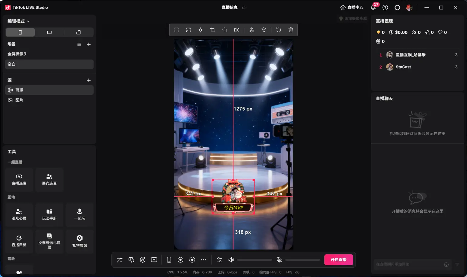 添加之後如圖所示,調整想要的大小,然後送出小禮物就會顯示出來(第一次播放會有點慢)
