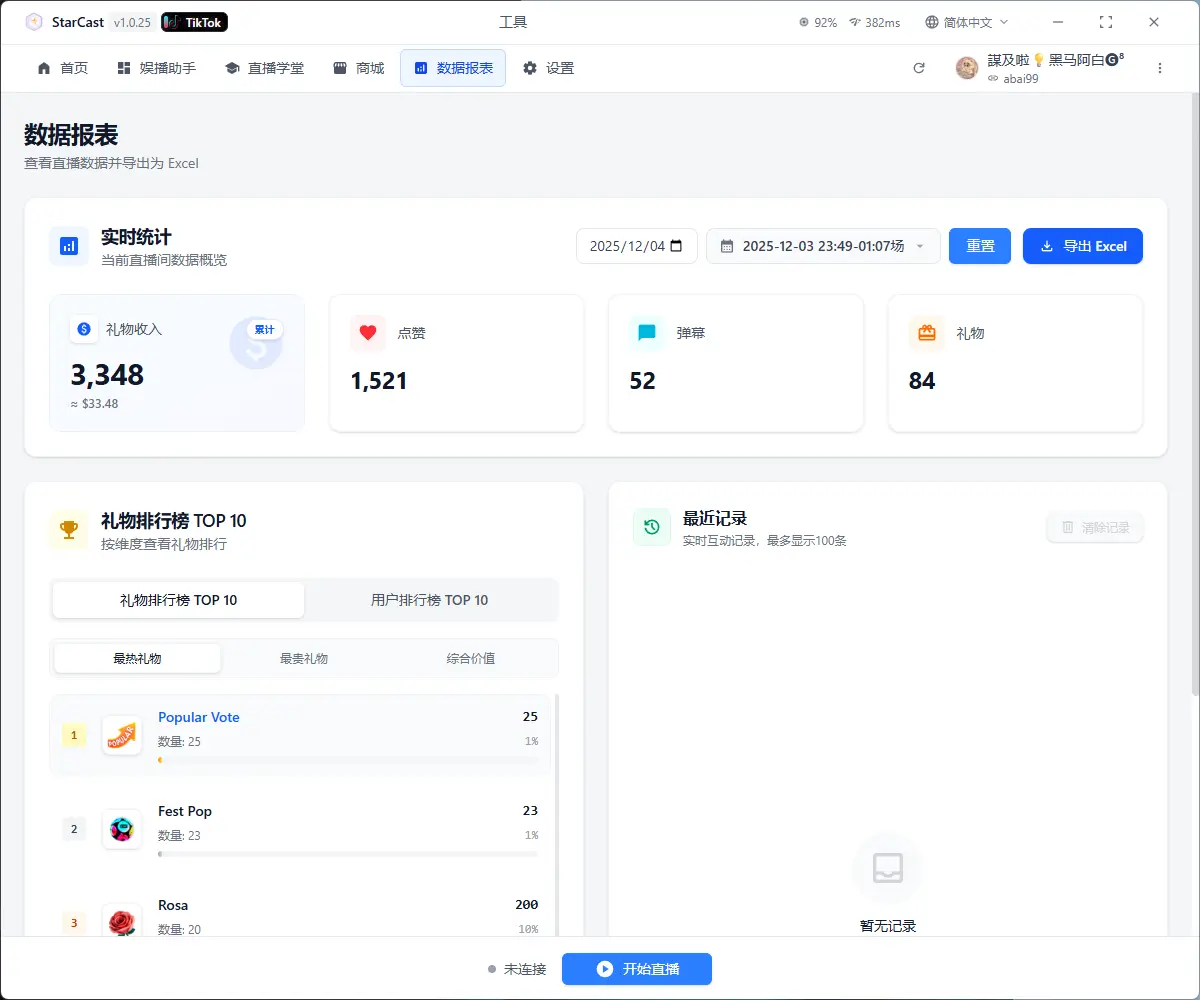 點擊這個會有單獨的視窗打開,顯示禮物數據