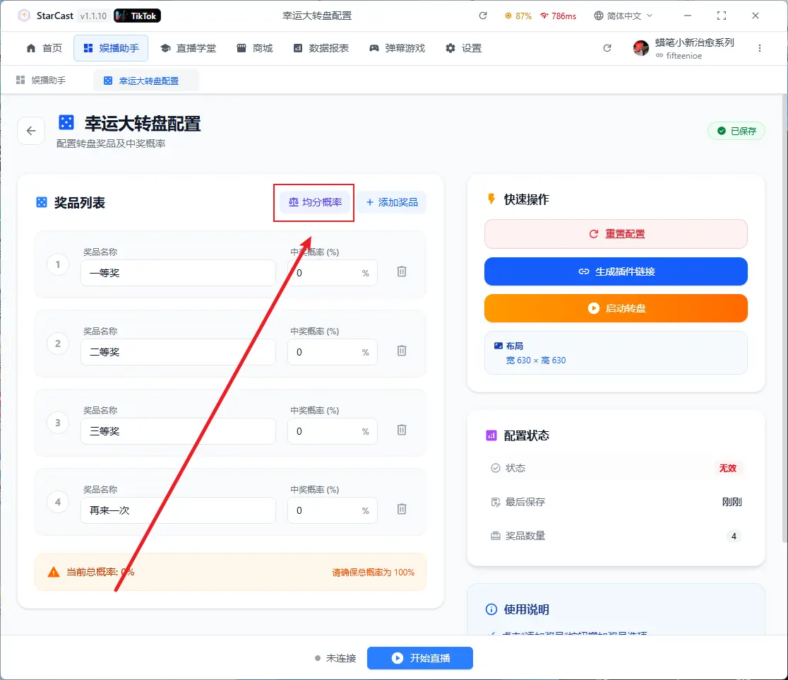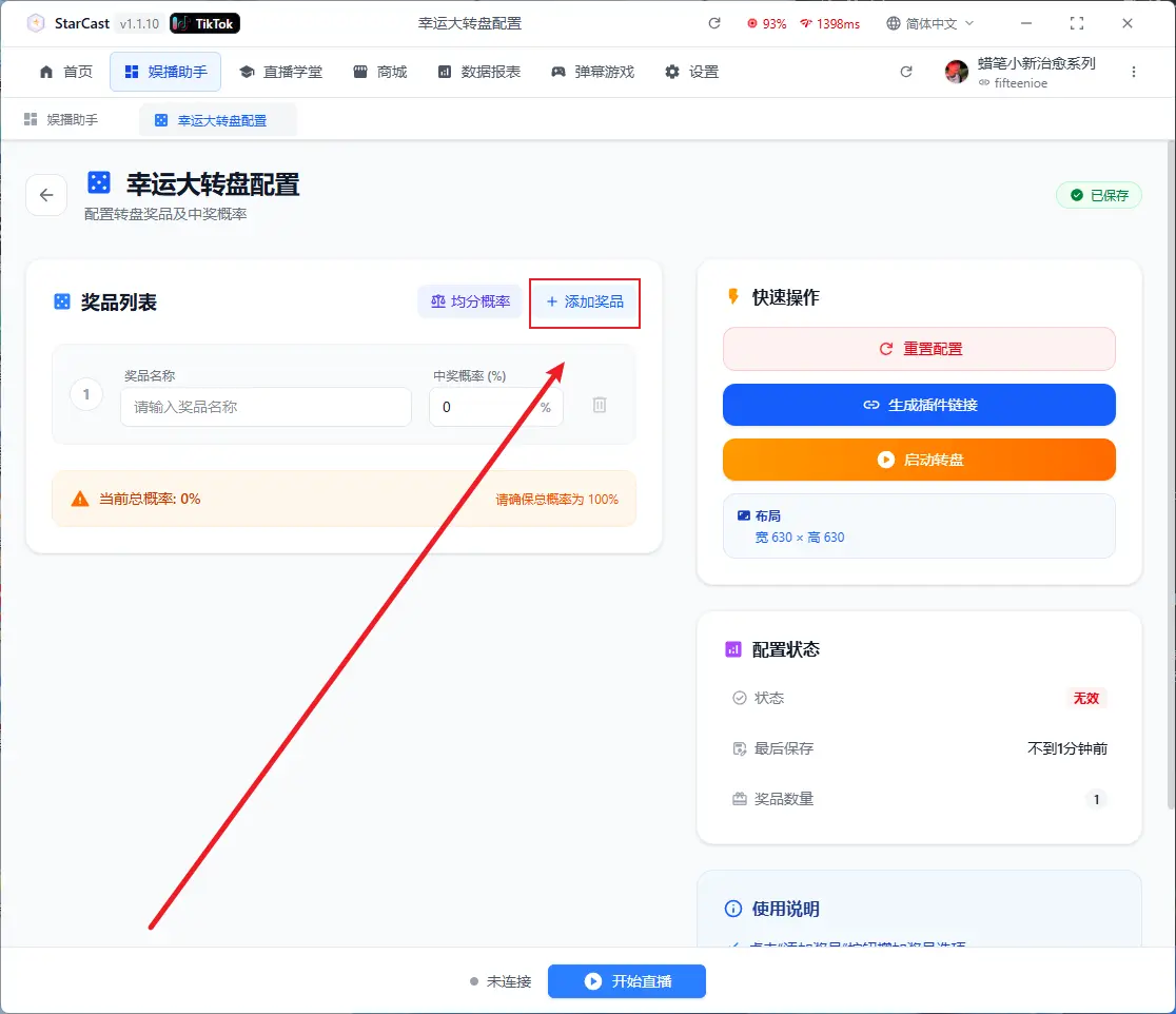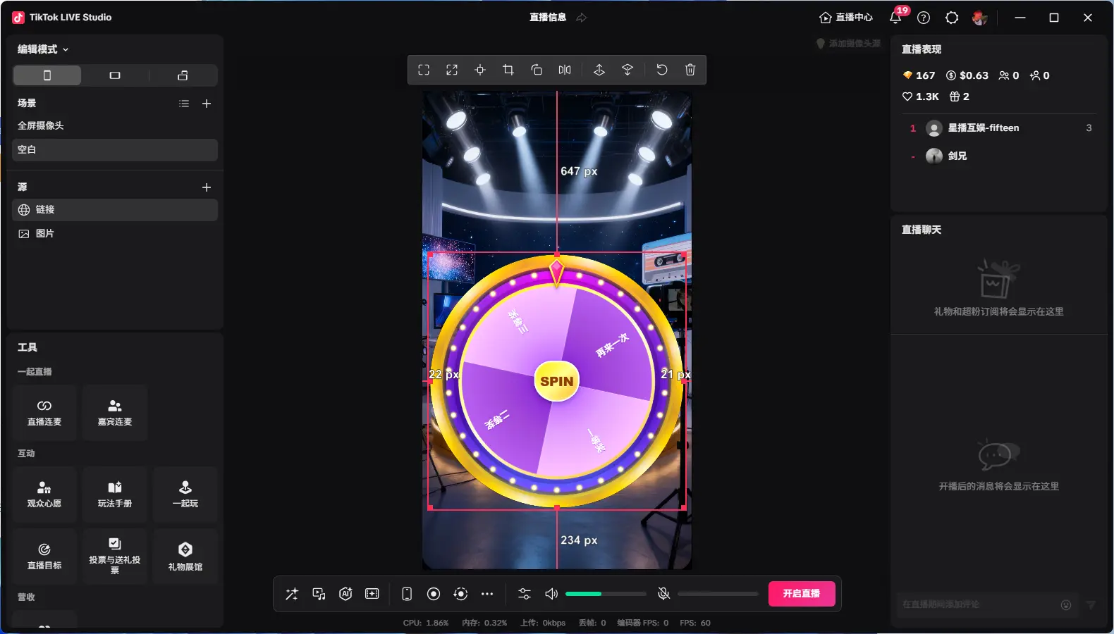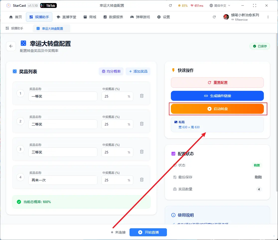 添加之後如圖所示,調整想要的大小,然後點擊啟動轉盤即可開始轉動